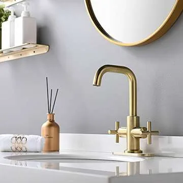 Phiestina Brushed Gold 2-Handle 4 Inch Centerset Single Hole Bathroom Faucet with Drain,Deck Plate and Supply Hoses, Fit for 1 or 3 Hole, SGF002-10-BG