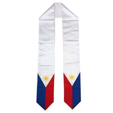 Show moreCelebrate academic achievement in style with the Philippines Flag Graduation Stole/Sash/Scarf. Crafted with care and precision, this stole is a distinctive accessory that stands out in any graduation ceremony. The vibrant colors and iconic design not only symbolize pride in one's heritage but also add a unique flair to your graduation attire. Made from high-quality materials, it offers both comfort and elegance, making it the perfect addition for graduates who want to make a statement.
