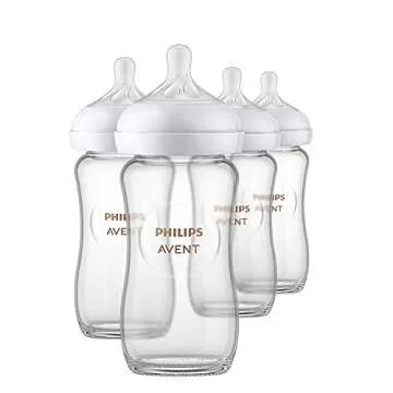 Philips AVENT Glass Natural Baby Bottles with Natural Response Nipples, Clear, 8oz, 4pk (SCY913/04) + Natural Response Baby Bottle Nipples Flow 2, 0M+, 4pk (SCY962/04) + Natural Response Baby Bottle Nipples Flow 1, 4pk (SCY961/04)