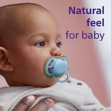Show more Introducing the Philips Avent Ultra Air Pacifiers, a must-have for every new parent! Crafted with breathable, BPA-free materials, these pacifiers feature extra-large air holes designed to keep your baby's delicate skin dry and irritation-free. The 98% nipple acceptance rate illustrates how effortlessly babies adapt to our textured silicone nipples. Made from 100% food-grade silicone, you can rest assured that they contain no hazardous chemicals or allergens, making them safe for your little one.