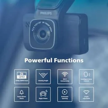 PHILIPS Dash Cam Wide Angle, 3" Screen Dashcam for Cars, Built-in WiFi, G-Sensor, Night Vision, Safety Alert, Loop Recording, Voice Control (Front Camera Only 1600P)