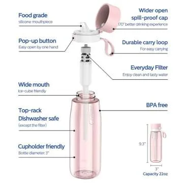 PHILIPS Filtered Water Bottle, BPA-Free Tritan Plastic Water Bottles, Replaces 450 Plastic Water Bottle with Reusable GoZero Everyday Water Filter, Portable Filtering Bottle for Travel, 22 oz, Pink