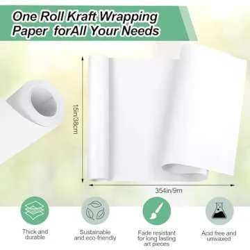 Phinus Craft Paper Roll 15''×354'', Industrial-Grade Kraft Paper Roll, White Easel Paper Roll for Kids for Moving, Gift Wrapping, Wall Art, Tab