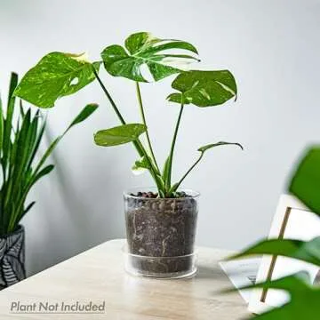 Phoenix Vine 6.5 InchClear Acrylic Planter Pot with Tray, Orchid Pot with Drainage Holes, Deep Saucer for Bottom Watering, Transparent Containers for Indoor Plants, Herbs, Set of 2, 91-A-F-2