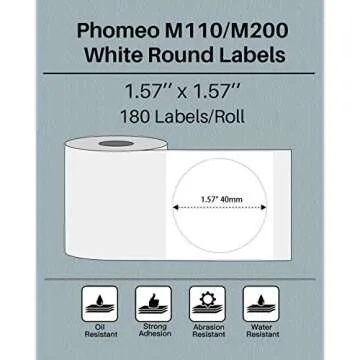 Show moreIntroducing the Phomemo Multi-Purpose Self-Adhesive Round Circle Label — the ultimate solution for your labeling needs! Tailored specifically for use with the Phomemo label makers (M110, M110S, M120, M200, M220), these labels are designed to make your labeling tasks effortless and efficient. Each roll contains 180 labels, measuring 1.57" x 1.57" (40x40mm), providing you with ample supply for all your projects.