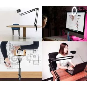 With a total boom arm length of 33 inches and a jaw clamp that fits desks or tables up to 5.2 cm thick, you can easily adjust the angle and positioning of the ring light to capture the perfect shot. Plus, powered via a USB port, you can connect it to multiple devices such as laptops or mobile chargers, ensuring that you’re always ready to shine.