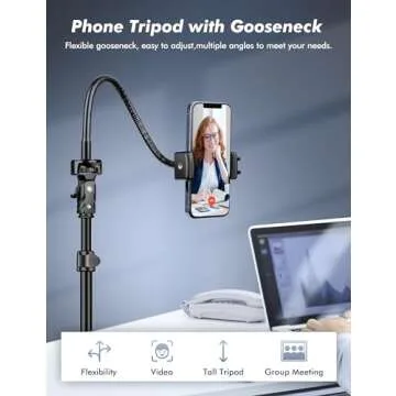 Phone Tripod Stand, Selfie Stick Tripod, 86.6" Tall Cell Phone Tripod with Adjustable Gooseneck Remote Phone Holder, Tripod for Phone Camera Compatible with iPhone 15 14 13 12 11 Pro