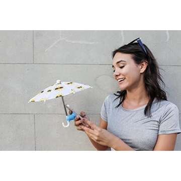 PhoneBrella Phone Umbrella Phone Cooler Tablet Umbrella Sun Shade Rain Shield Mini Umbrella for all Cellphones Cute Piggy Suction Cup Phone Holder Accessories for Phones (Sunshine/Sky Blue Piggy)