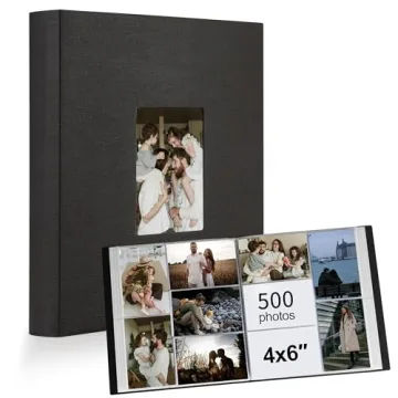 Photo Album 4x6 500 Pockets 1pc, Large Capacity Photo Book Album with Front Window, Picture Album for Family Wedding Anniversary Baby Travel, Black