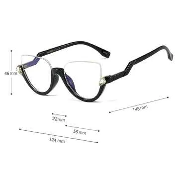 Photochromic Readers Fashion Bling Rhinestone Retro Punk Style Clear Half Frame Cat Eye Shining Rhinestone Reading Glasses (clear, 1)
