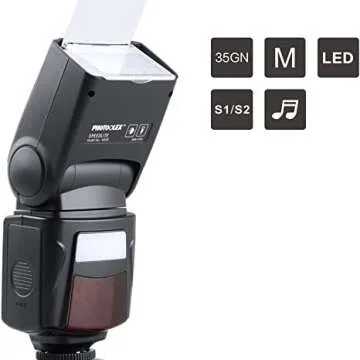Show moreThe PHOTOOLEX M500 Flash Speedlite is an exceptional tool for amateur and professional photographers alike. Engineered to work with a broad range of camera brands including Canon, Nikon, Sony, Panasonic, Olympus, Fujifilm, Pentax, Sigma, Minolta, and Leica, this versatile equipment is suitable for various digital SLR and film SLR cameras, as well as digital cameras that feature a single-contact hot shoe. Its sleek and professional design encapsulates its premium build quality and sets it apart as a reliable accessory in any photographer's kit.