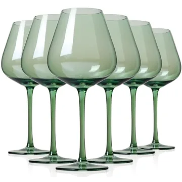 Show more Introducing the Physkoa Sage Green Wine Glasses Set of 6, a captivating blend of artistry and functionality designed to redefine your wine enjoyment. Crafted from high-quality materials, each glass features a generous 18oz capacity and an elegant long stem, tailored for both red and white wines. The beautiful sage green hue resonates with the natural vibrancy of spring, effortlessly elevating your dining experience and enhancing your home decor.