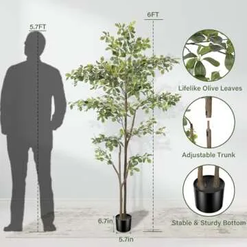 PHYTREE 6ft Faux Black Olive Tree, Artificial Olive Trees with Natural Trunk and Realistic Leaves, Faux Olive Plants for Home Office Indoor Decor