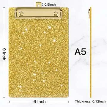 Piasoenc Acrylic Small Clipboard, Fashion Glitter Clip Board with Low Profile Gold Clip, Cute Confetti Board for Kids, Students, Teacher, Woman, Artist, A5 Letter Size 6 x 9 in, Gold