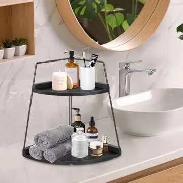 Show more If you're tired of a cluttered bathroom counter and want a unique solution, look no further than our innovative bathroom corner organizer! With a smart scalloped shape and an elegant trapezoidal design, this space-saving unit is perfect for smaller spaces, ensuring your skincare products, makeup, and other essentials are beautifully stored while maximizing every inch of your home. Its two-tiered structure allows for easy organization while maintaining easy access to all your favorite items.