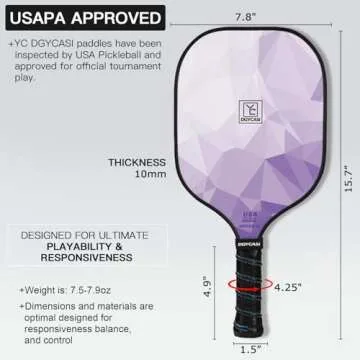 The YC DGYCASI paddles carry the esteemed USAPA approval, assuring you that they meet the highest standards for championship play. You'll love the vibrant sporty colors available, and the generous paddle surface area of 15.7”x 7.8” provides a perfect sweet spot for every hit, elevating your control and accuracy.