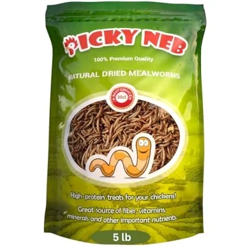 Show more Introducing the delightful and nutritious Picky Neb Dried Mealworms, a must-have treat for all bird lovers and backyard poultry enthusiasts! These premium-quality mealworms are not just snacks; they are a feeding revolution that transforms your yard into a vibrant bird sanctuary. With an impressive 5-pound bulk package, your chickens and wild birds will revel in these tasty morsels, guaranteeing that every mealtime feels like a grand celebration! Gone are the days of chasing after birds or chickens in your yard; simply toss these mealworms out and prepare to be amazed as your feathered friends come flocking!