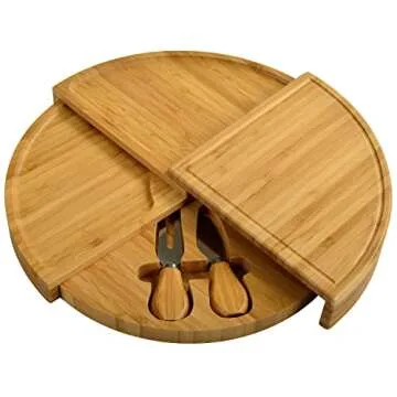 Picnic at Ascot Patented Bamboo Cheese Board/Charcuterie Serving Platter - Stores as a Compact Wedge- Opens to 13" Diameter - Designed & Quality Checked in USA