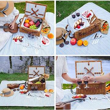 Why You Will Love This Product: This picnic basket is more than just a carrying case; it’s an invitation to create cherished memories. Imagine sharing a gourmet meal with your loved one under the open sky, all while enjoying the comfort of a secure, well-planned setting. This set enhances every outdoor experience, making simple moments memorable, whether you're at a park or on a beautiful beach.