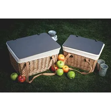 PICNIC TIME Canasta Wicker, Picnic Basket for 2, 16.5 x 11.3 x 9.8, Beige Canvas With Brown Lid