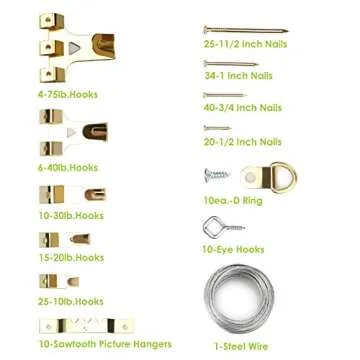 Picture Hanging Kit, Picture Frame Hanger Tool, 222 Pieces Heavy Duty Photo Hanger Accessories with Picture Hanging Wire, Hooks, Nails and Hanger Level