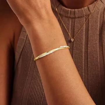 Picuzzy Gold Cuff Bracelets for Women Trendy 14k Gold Plated Bangle Bracelets for Women Non Tarnish Dainty Gold Bangles Cubic Zirconia Adjustable Wave Bracelet Fashion Jewelry Gift for Women