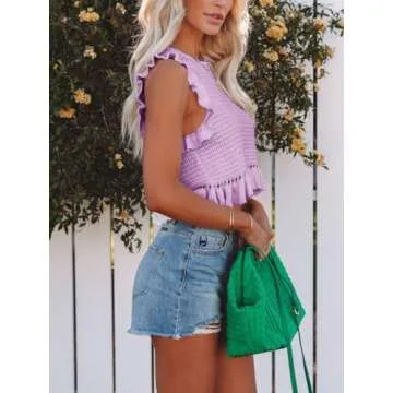 PiePieBuy Women's Summer Knit Tank Tops Crew Neck Sleeveless Cami Shirts Tees Ruffle Sweater Vest Purple