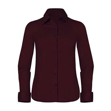 PIER 17 Button Down Shirts for Women, Tailored Long Sleeve Casual Business Professional Office Work Collared Dress Blouse Burgundy