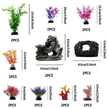 PietyPet Fish Tank Decorations Plants with Resin Broken Barrel and Cave Rock View, 15pcs Aquarium Decorations Plants Plastic,Fish Tank Accessories, Fish Cave and Hideout Ornaments, Aquarium Decor