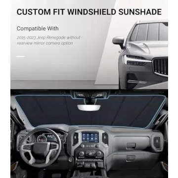 Pigenius Car Windshield Sun Shade fits 2015-2023 Jeep Renegade (Without Rearview Mirror Camera),Car Window Shades-Safeguard