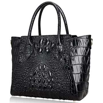 PIJUSHI Designer Crocodile Handbags for Women Genuine Leather Purses Top Handle Shoulder Bag (6082 Black)