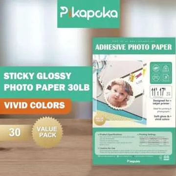 Show moreElevate your creative projects with the unparalleled Pikapoka 11x17 Self-Adhesive Photo Paper, tailored to inspire artists, crafters, and DIY enthusiasts alike! Packed in a convenient 30-value pack, this photo paper boasts a sleek glossy finish that brings your images to life, showcasing vibrant colors, enhanced contrast, and stunning details that are sure to impress. Whether you're embarking on a scrapbook journey, crafting personalized albums, or designing custom stickers, this photo paper will undoubtedly transform your ideas into exquisite realities.