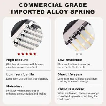 It comes equipped with 5 metal springs, each providing about 22 lbs of resistance, allowing for customizable workouts.