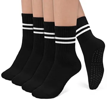 Stylish Pilates Socks with Grips - Non-Slip Yoga Athletic Socks for Women, 4 Pairs