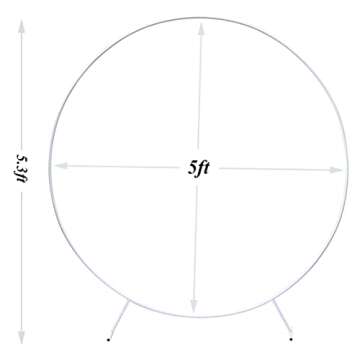 Introducing the PILIN 5ft White Round Balloon Arch – the perfect centerpiece for your next celebration, designed to elevate your special moments with style and elegance. Standing impressively at 5.2 feet tall, this magnificent arch is crafted with durable metal that showcases a beautiful white weather-resistant epoxy finish, ensuring both aesthetic appeal and longevity. Weighing only 6 pounds, it's ideal for both outdoor and indoor events, although we recommend added supports...