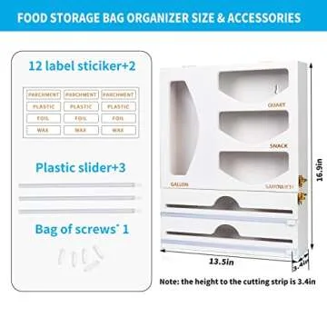 - 6 IN 1 Functionality: Store foil, plastic wrap, gallon bags, quart bags, snack bags, and sandwich bags in one convenient unit.