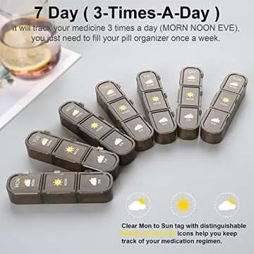 Pill Organizer 3 Times A Day, Pill Box 7 Day - Acedada Weekly Travel Medicine Organizer Box, Large Pill Container Holder Vitamins Case Pill Dispenser, Brown