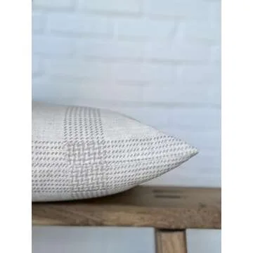 Pillow Cover Linen Lightweight 20 x 20 in Double Sided Block Print with Zipper Easy Removal Home Decor Shabby Chic Farmhouse Neutral Decorative Sofa Couch Accent (Plaid White Grey)