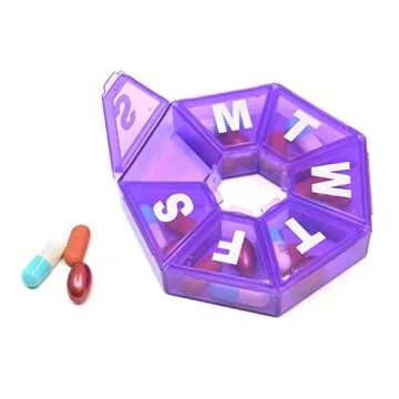 Pillthing Weekly 7 Sided Pill Organzier 3 pack 1 each of Blue Green Purple. Small Pill Box for Travel with Medical Alert Card