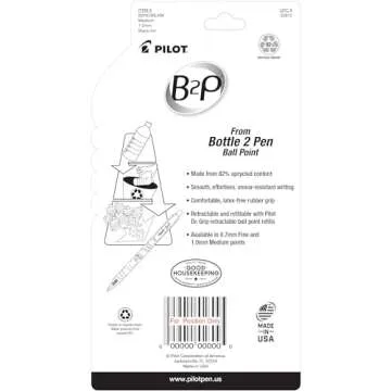 Show more Introducing the ideal eco-friendly writing solution, the Pilot B2P Retractable Ball Point Pens! Crafted from recycled bottles, these pens not only stand out with their polished design but also promote sustainability. Whether you're sketching your latest ideas, journaling your thoughts, or taking notes for an important meeting, the B2P combines usability with environmental responsibility.