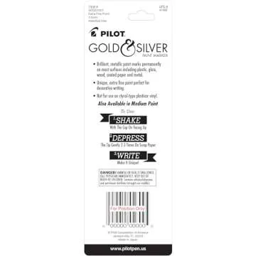 Pilot Metallic Permanent Paint Markers, 1 Each Gold & Silver, Extra Fine Point, Set of 2 (41400)