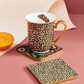 Pimpernel Creatures of Curiosity Coasters, Set of 4, Absorbent Felt Protects Furniture, Table, & Desk, 4x4 Inch, Tea and Coffee Square Coasters Set for Kitchen, Housewarming Gift or Home Decor