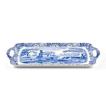 Pimpernel Spode Blue Italian Collection Large Handled Tray | Serving Tray for Lunch, Coffee, or Breakfast | Made of Melamine for Indoor and Outdoor use | Measures 18.9" x 11.6" | Dishwasher Safe