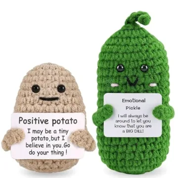 Show moreIntroducing the Cheer Up Gifts & Collectible Dolls, a delightful duo of handmade positivity that will bring smiles to anyone’s face! These charming stitched dolls consist of a cute cucumber and an adorable potato, each crafted with care from high-quality woolen yarn. Ideal for various occasions, including Mother's Day, Father's Day, birthdays, anniversaries, and even casual gifting moments, these dolls come with uplifting message cards that convey heartfelt emotions. Not only do they serve as delightful collectibles, but they also provide emotional support, making them perfect for friends, family, colleagues, and students alike. Whether it's brightening up a coworker's desk or adding a touch of warmth to a dorm room, these dolls resonate positivity in a creative and engaging way.