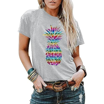 Show more Introducing the vibrant and stylish Women's Pineapple Shirt, a delightful addition to your casual wardrobe that embodies fun, comfort, and versatility. Made from a luxurious blend of 60% polyester, 35% cotton, and 5% spandex, this shirt is not only soft against your skin but also breathable and slightly stretchy, ensuring a perfect fit for all-day wear. The playful pineapple graphic brings a touch of whimsy to any outfit, making it ideal for a variety of occasions, from beach outings to casual gatherings.