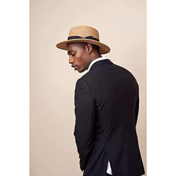 Pineapple&Star Sun Straw Fedora Beach Hat Fine Braid UPF50+ for Unisex (Medium, Brown_BowBK)