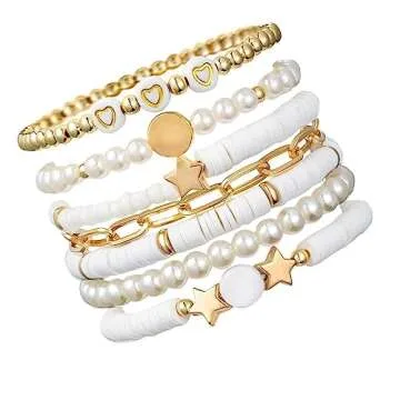 Pingyongchang 8Pcs Heishi Surfer Bracelets Set: a delightful assembly of vibrant, playful bracelets designed to add a splash of color and joy to your accessories collection. This set consists of eight beautifully crafted bracelets featuring a mix of vinyl disc beads, smile motifs, evil eye elements, gold seed beads, and artificial pearls. Available in an array of colors and styles, these bracelets can seamlessly transition from casual summer outings to chic evening gatherings. Their unique designs are not just visually appealing but also hold cultural significance; the legendary evil eye beads are believed to offer protection and bring luck to the wearer.