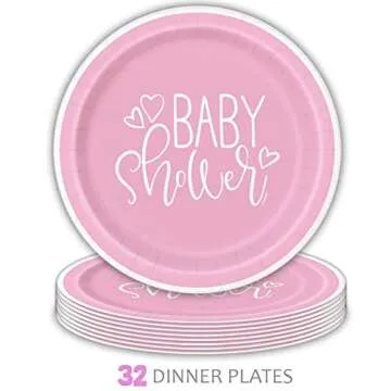 Pink Baby Girl Shower Party Supplies for 32 Guests Includes: Paper Plates, Luncheon Napkins, 16 oz Cups, Classy and Stylish Light Pink Design
