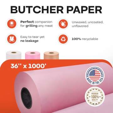 Introducing the **Pink Butcher Paper by IDL Packaging**, the ultimate tool for any grilling and smoking aficionado! Measuring a generous 18 inches wide and an impressive 1000 feet long, this roll of uncoated and unwaxed butcher paper provides a whopping 1500 square feet of superior wrapping material, designed to elevate your culinary creations. Made from **100% food-grade kraft pulp**, this pink butcher paper is not only highly durable but also crafted without any coatings or wax, ensuring it’s safe for...
