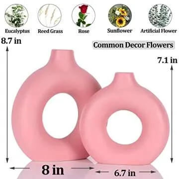 Pink Ceramic Vase Set of 2-2 Round Pink Vase, Modern Pink Vases for Decor Flower Vase, Apply to Living Room, Kitchen, Mantle, Bedroom, Dining Table, Office, Farmhouse, Pink vases for centerpieces
